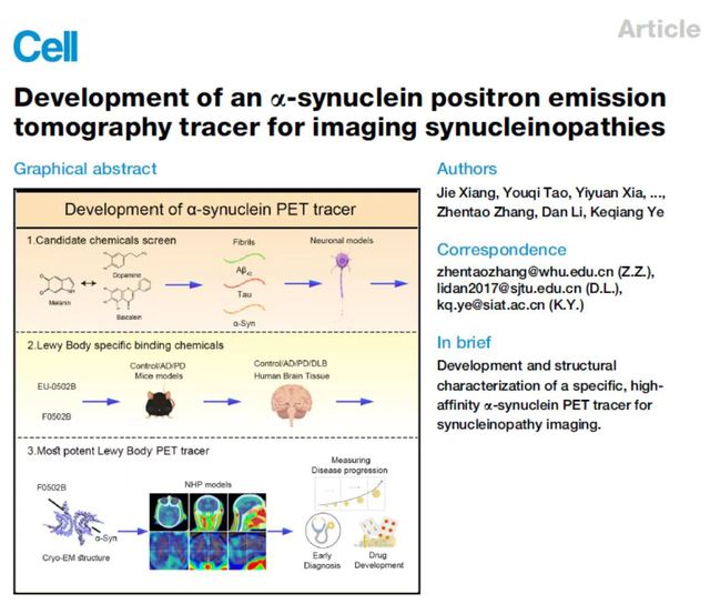 2023年7月,夏亦元在國際頂級期刊《Cell》發布封面文章,展示世界首款帕金森病相關疾病的α-syn PET診斷劑。相關成果在學術界獲得高度評價,大大推進了對帕金森病的研究治療進程。