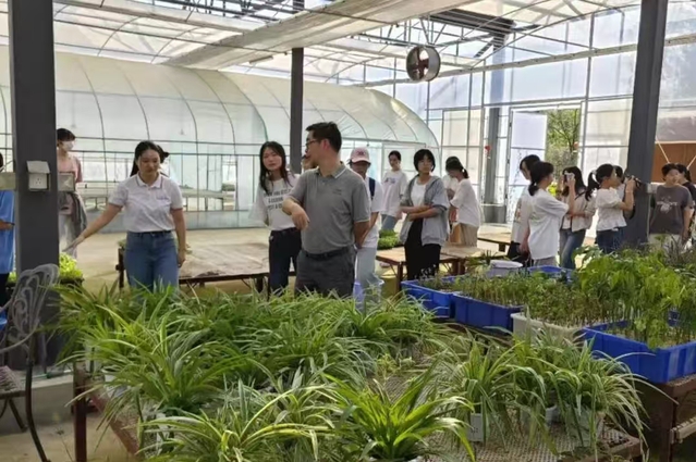 如果把校園綠化與花木培育當作周磊的“戰場”,那么花房就是他的“主陣地”。2022年,花房搬遷時遇到諸多困難,時間緊、任務重,周磊帶領著7名員工,暑假頂著炎炎夏日40度高溫,每天用三輪車一車一車地將1500余盆花卉綠植、100余盆育苗、30立方種植土以及一批肥料、花盆等物資分批轉運至新址?!八恢焙苡眯墓芾砘ǚ浚ǚ拷ㄔO遇到困難時,他擔起重任。有時候我們都下班了,他還在花房養護著植物?!蓖聜儗λQ贊有加。