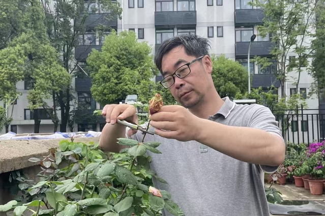 20年來,隨著經驗的累積,周磊對于防治蟲害已經有了一套自己的方法。他在每日巡查后,記下需要修剪、防蟲、澆水的花木,及時發現并采取相應防治措施,保護植物健康,改善校園生態質量。工作之余,他還通過勞動教育活動,帶領學生勞動實踐,講解花木培育原理和種植技術。