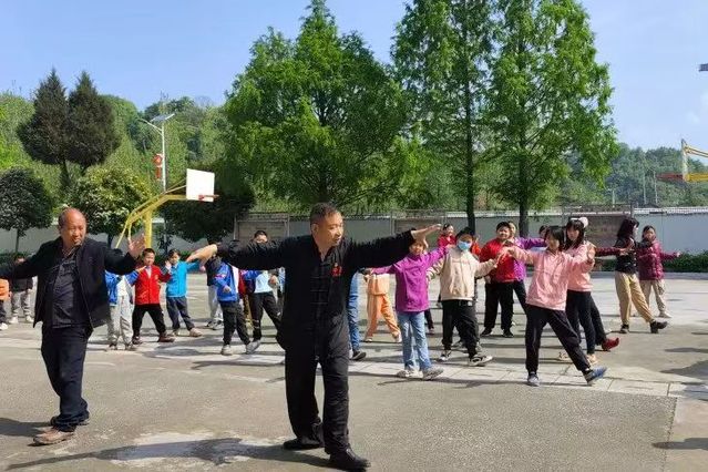 扶貧駐村期間,利用課間操時間,他在界牌小學師生中傳授吳式太極拳,在教師中培訓教練,目前已堅持6個月,已開展60余次的教學工作。他說,在小學生中普及太極拳是一種全新的嘗試,有助于發揚本土優秀文化遺產,培育傳統文化傳承人。